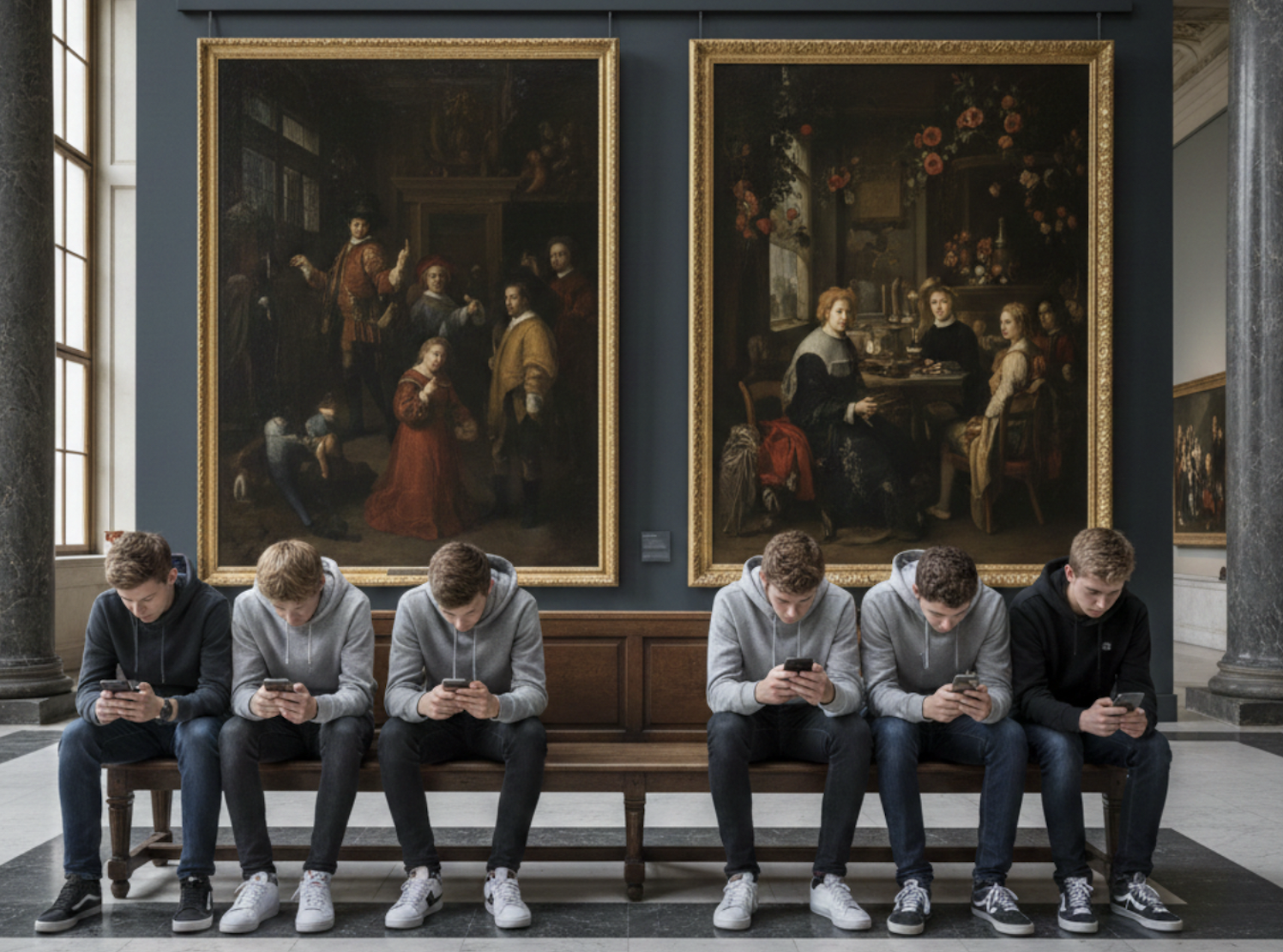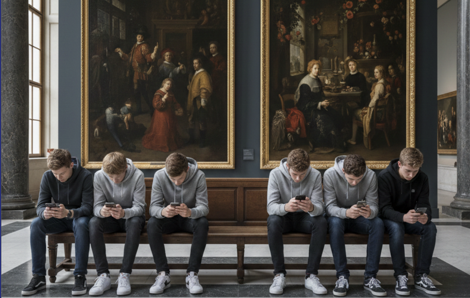 para um abismo de luz baça e carne condenada que o museu guarda no silêncio de uma lousa. A assinatura não existe, porque a dor não tem nome; é apenas um rasto de fumo que ficou preso nos espinhos do caminho. Somos todos esses fantasmas, à espera de um amanhecer que naquele inferno nunca chega a romper. Escrever sobre este painel é um esforço contra a loucura, perante o ruído do nada que sobe das caves. Naquelas profundezas, a morte não reconcilia, apenas observa, enquanto a eternidade nos esmaga com o seu peso de pedra e mistério. Em quinhentos anos nada mudou e no futuro nada mudará.