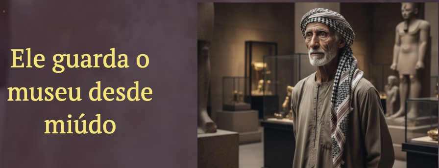 Ele estava a um canto, quase parecia uma estátua imóvel, calado, fundindo a sua pele escura com as sombras do granito. Aproximei-me e perguntei-lhe: "Quem és tu?". - Eu sou o guarda deste museu - respondeu ele, com uma voz seca que parecia vir do fundo dos séculos. - Estás aqui há muito tempo? Pareces fazer parte destas paredes. - Desde pequeno. O meu pai vigiava estas salas e eu trazia-lhe o pão. Cresci a correr por entre estes sarcófagos como se fossem a mobília da minha casa.