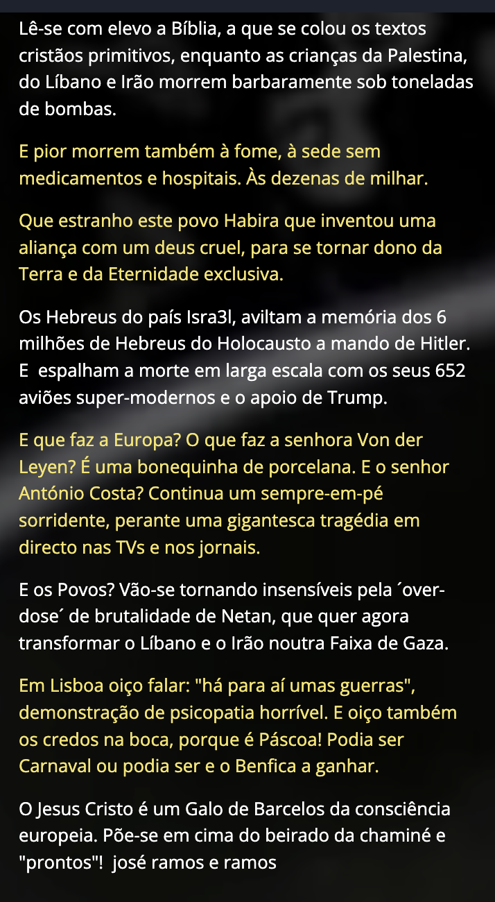 E ressuscitam os milhares meninos assassinados em Gaza, Líbano e Irão?
